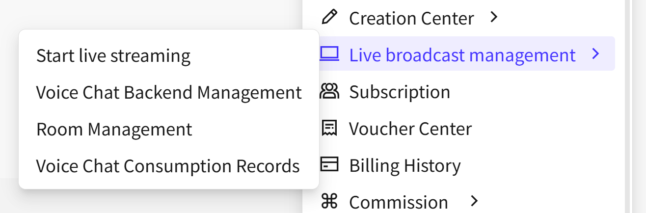 When using computer, go to Live Broadcast Management and Start Live Streaming.